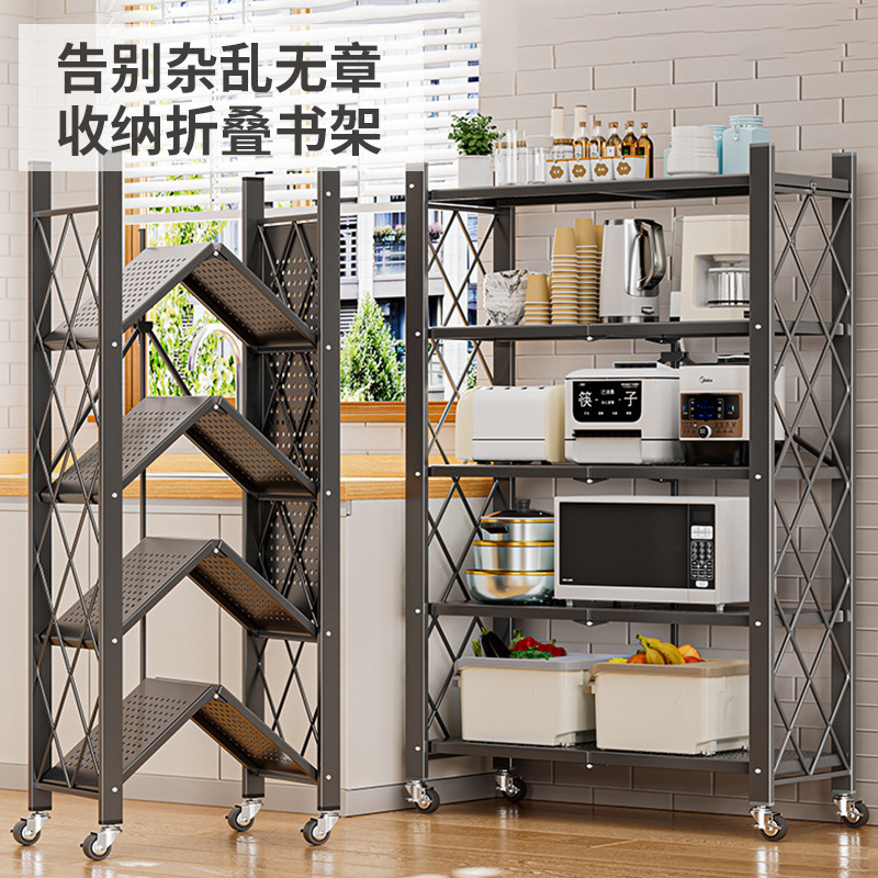 可移动折叠置物架货架免安装书房折叠收纳置物架可移动客厅储物架