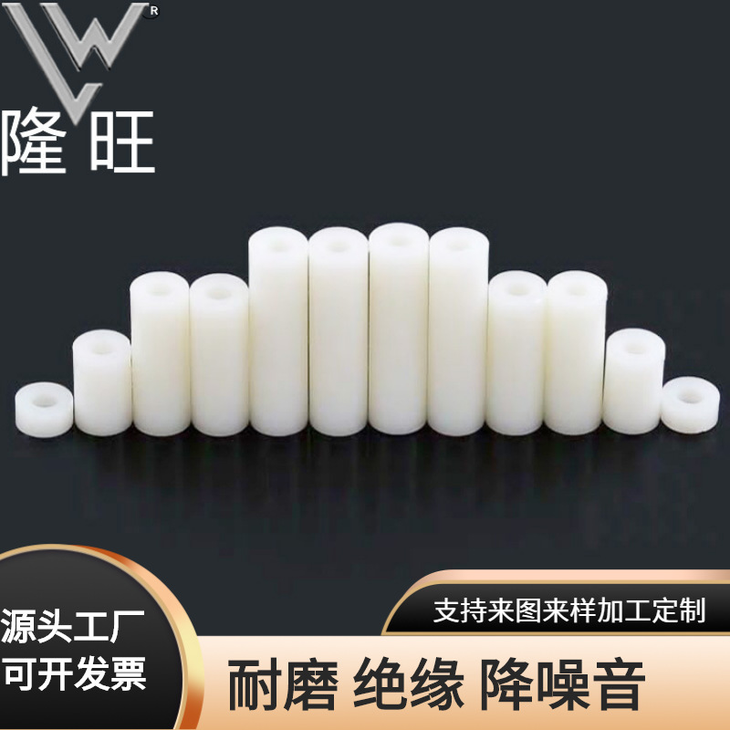 PA6尼龙垫片圆柱塑料垫片直通圆管螺丝尼龙柱耐磨白色POM垫片尼龙