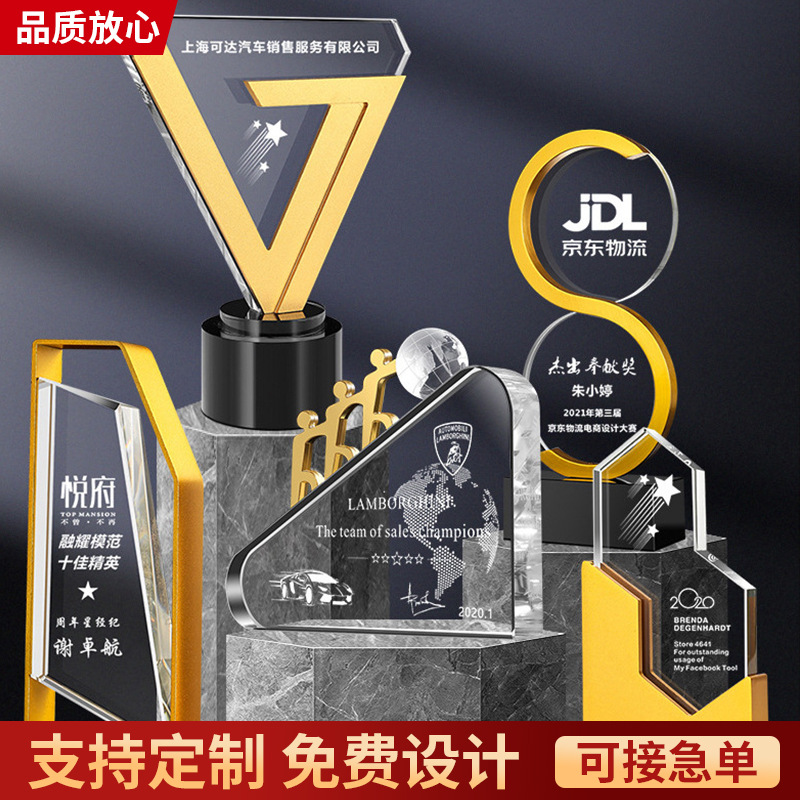 2024新款锌合金水晶奖杯员工奖牌年会授权牌厂家批发节日庆典奖牌