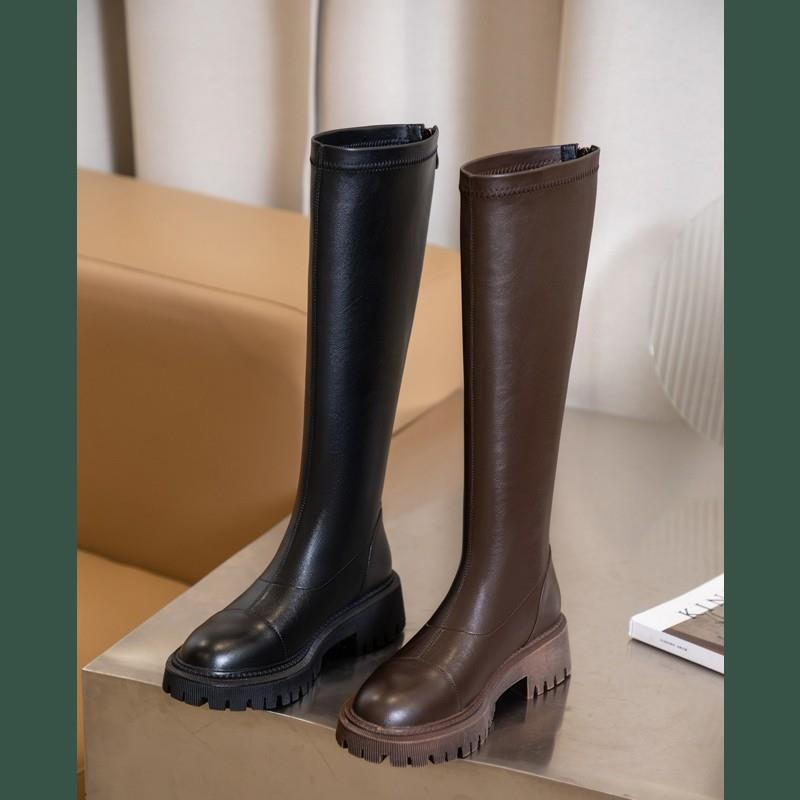 秋冬古韩国女鞋棕色高筒靴2022骑士靴不过膝弹力长靴英伦瘦瘦靴