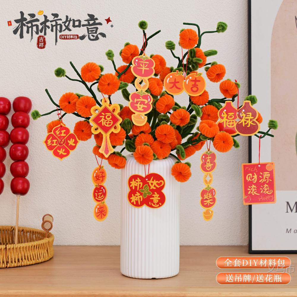 新年柿柿如意扭扭棒手工DIY材料包节日活动新年礼物diy柿子花礼品