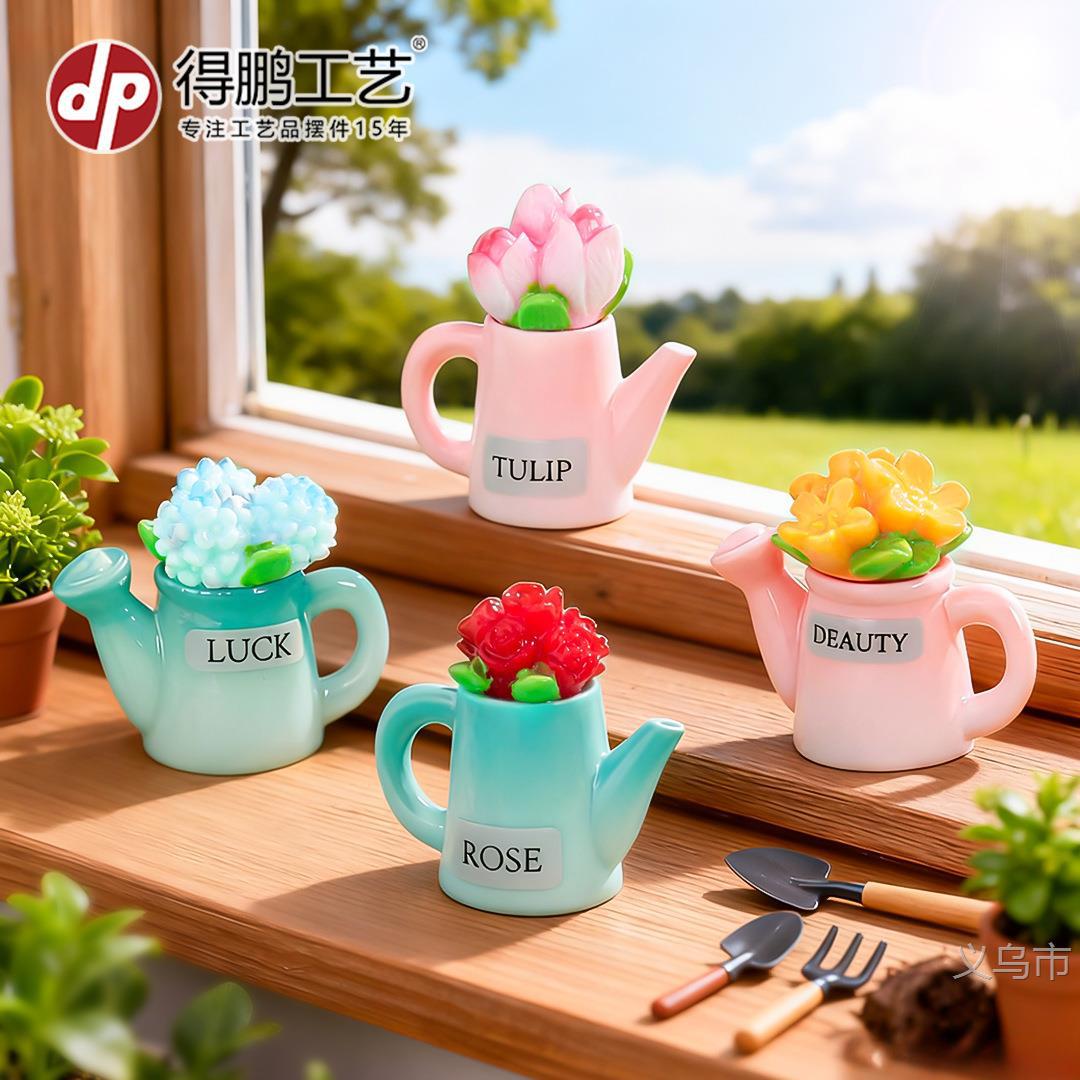 微景观摆件仿真水壶鲜花植物盆栽树脂工艺品娃娃屋桌面迷你小摆件