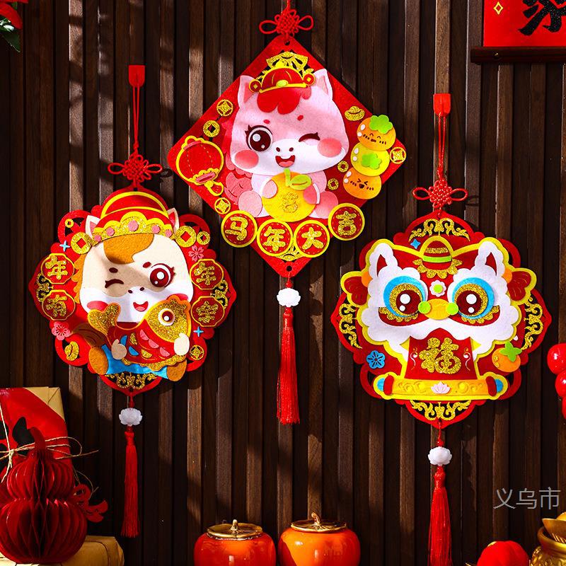 马年新款醒狮挂饰 儿童幼儿园diy手工材料包春节新年装饰益智玩具