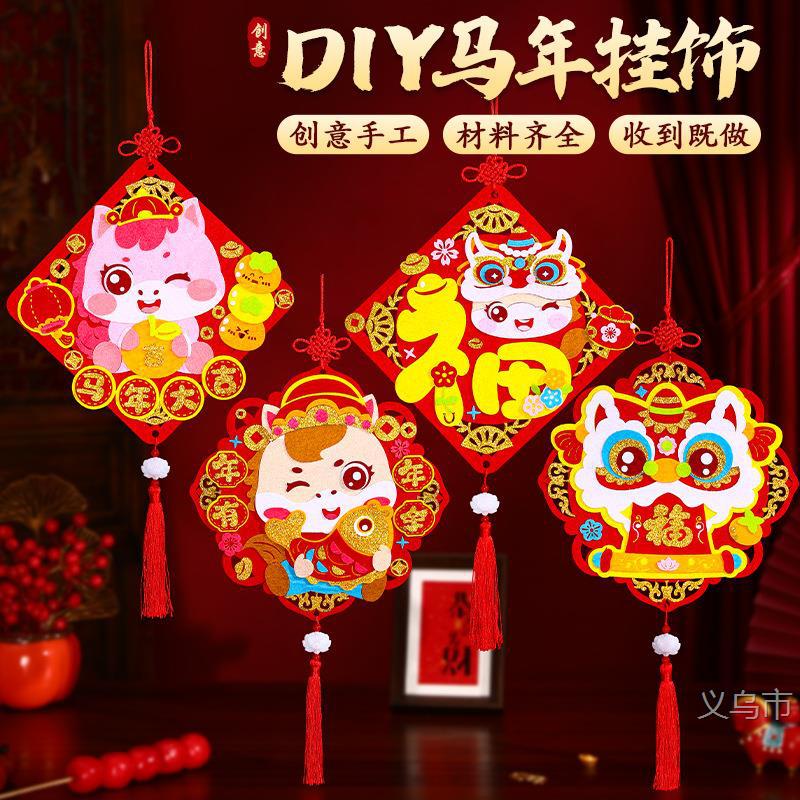 新款儿童国潮醒狮手工diy材料包春节挂饰马年挂件幼儿园新年礼物