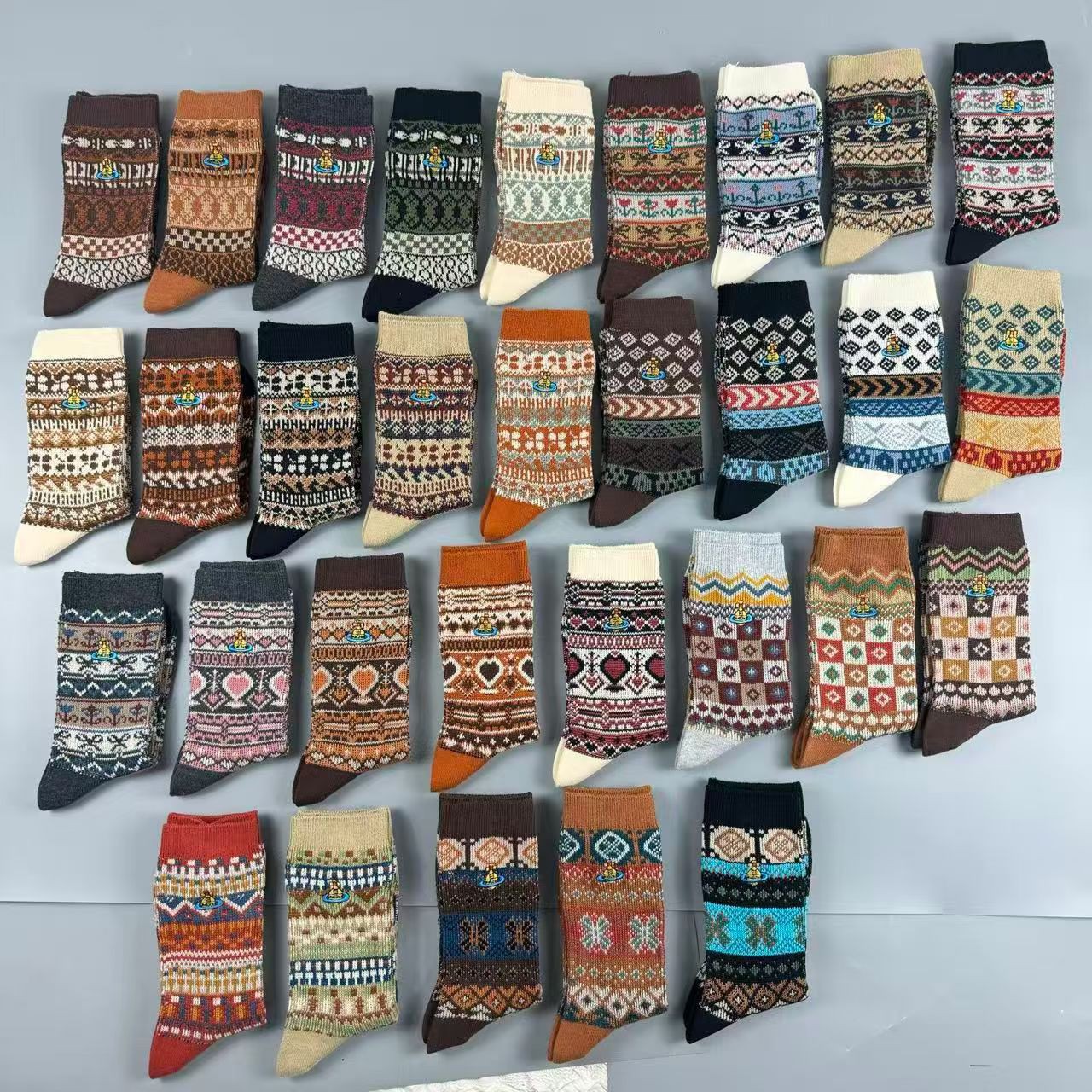 秋冬刺绣西太后女士袜子复古民族风女袜冬季中筒袜加厚保暖长袜
