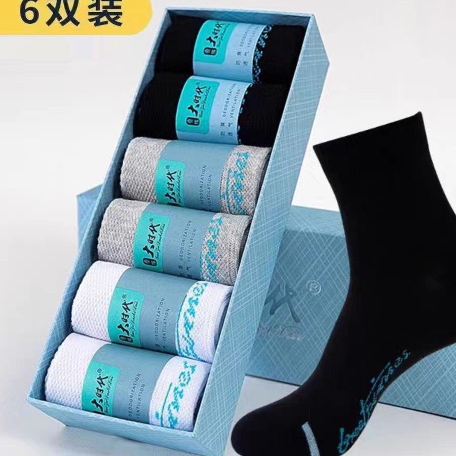 盒装蓝标大时代袜子批发长袜短袜黑白休闲百搭灰中筒