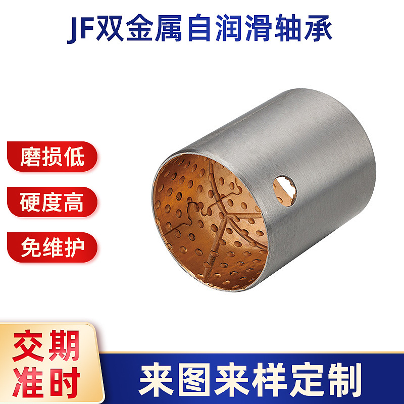 JF双金属自润滑轴承套带油槽油孔复合低碳钢铜合金轴承套主轴批发