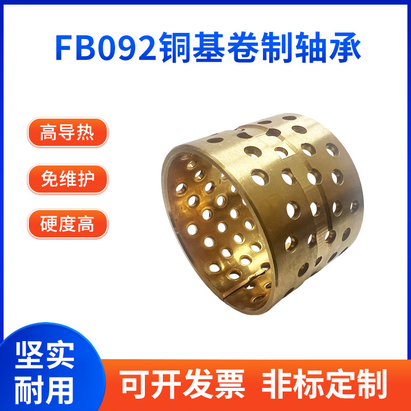 FB092铜基卷制轴承工业机械无油自润滑轴铜套自润滑耐磨复合衬套