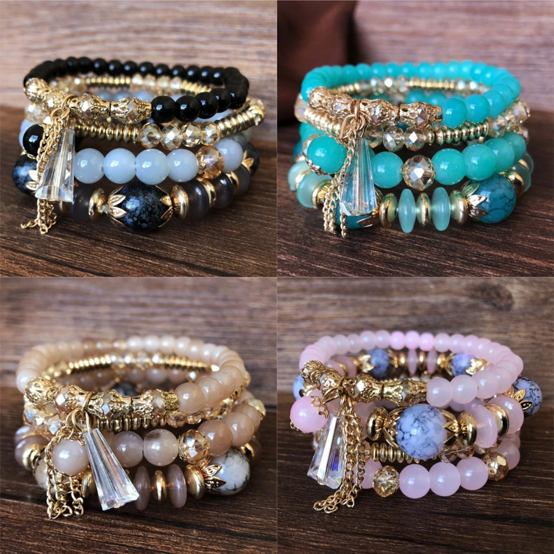 跨境热销波西米亚风创意水晶手链手串百搭4条装多层串珠手链批发