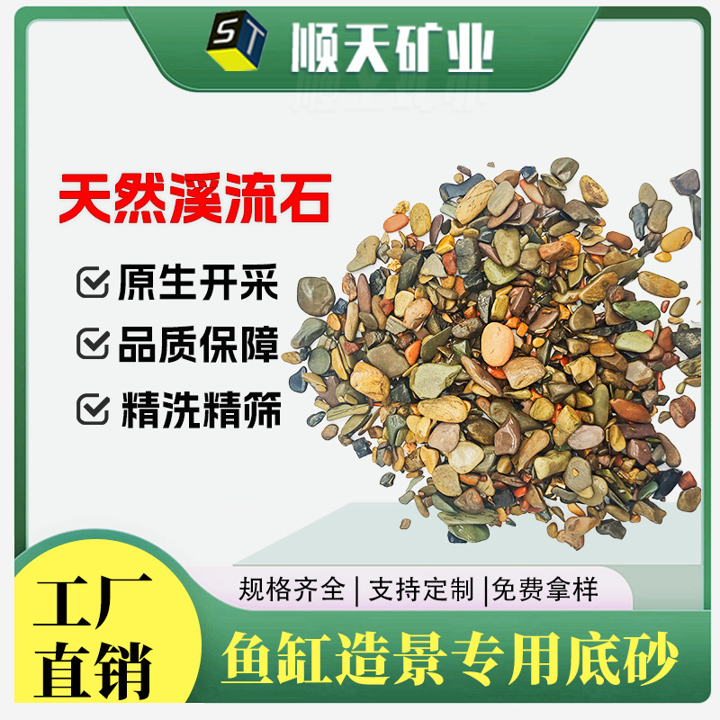 厂家直销天然溪流石生态鱼缸装饰造景五彩底砂过滤龟缸专用溪流砂