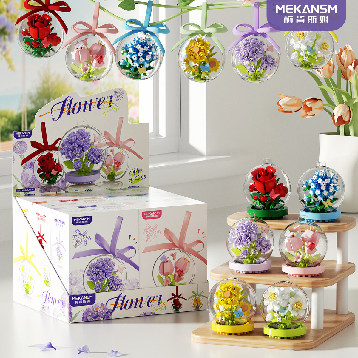 满天星辰花愿望球玫瑰摆件积木拼装微颗粒网红花球挂件情人节礼物