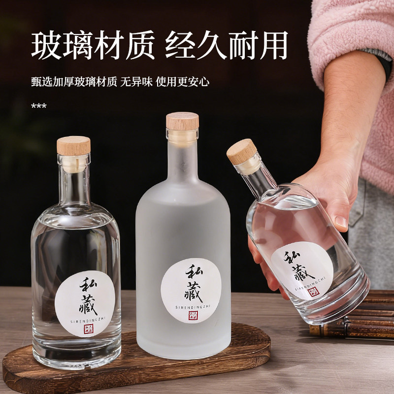 高透明伏特加酒瓶黄酒洋酒瓶磨砂自酿酒果酒瓶白酒瓶空瓶玻璃瓶