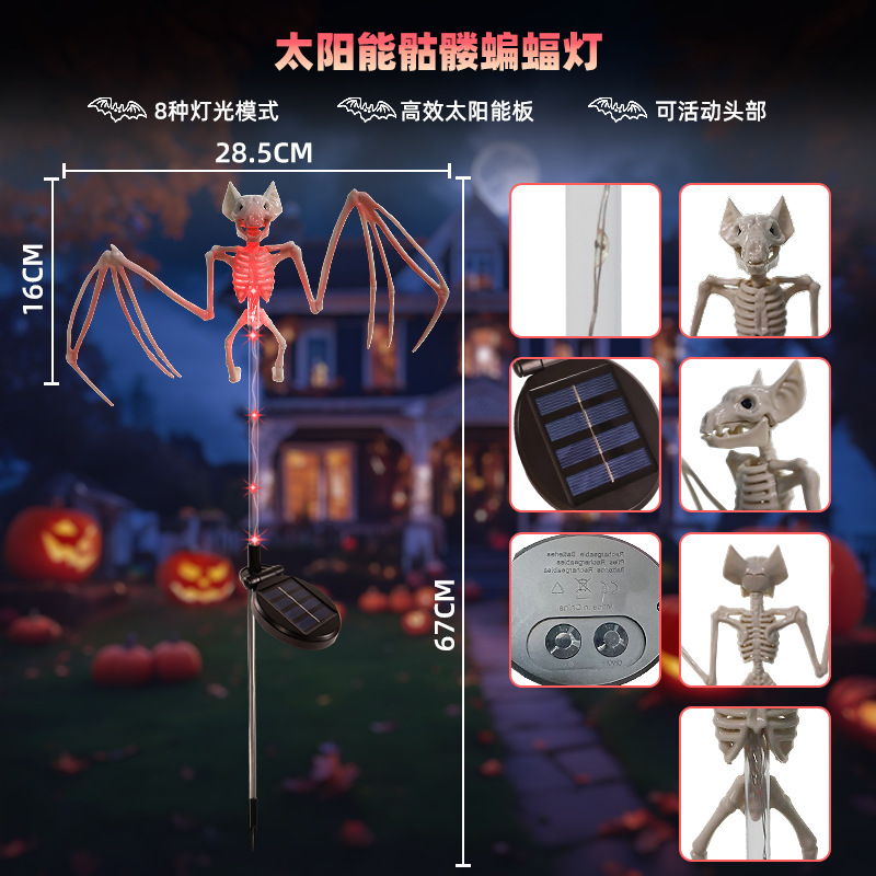 跨境万圣节地插灯恐怖装饰庭院布置蝙蝠骷髅架地插草坪灯批发定
