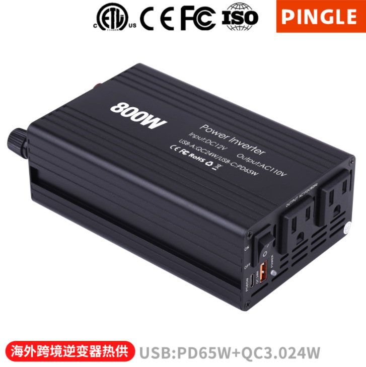 跨境车载逆变器汽车逆变器800w12v110v逆變器车载专用pd65w美规