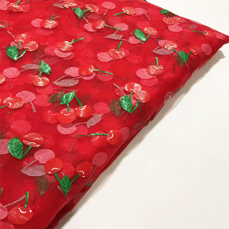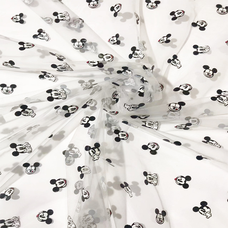 3D数码烫金儿童服装网纱面料 小樱桃锦纶网纱布料厂家直发