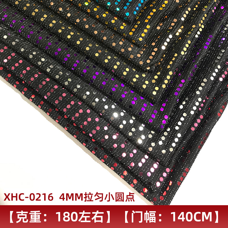 新款涤纶氨纶银丝亮片布XHC-0216 4MM拉匀小圆点银丝亮片布料