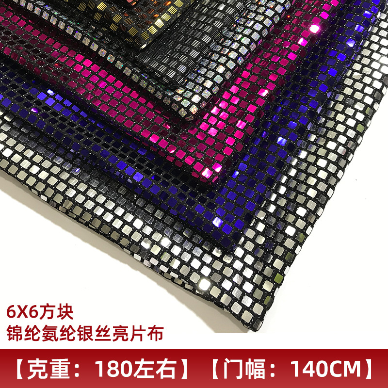 厂家直发6X6方块锦纶氨纶银丝亮片布 优良礼服舞台装银丝亮片布料