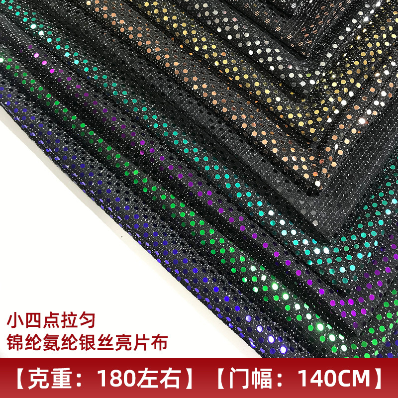 厂家直发小四点拉匀锦纶氨纶银丝亮片布装饰服装窗帘银丝亮片面料