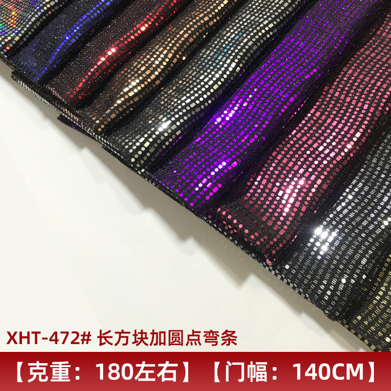 【银丝烫金亮片布】XHT-472长方块圆点弯条涤纶氨烫金亮片布礼服