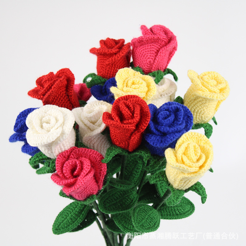 仿真手工玫瑰花成品毛线编织玫瑰花钩针居家装饰花束情人节日礼物