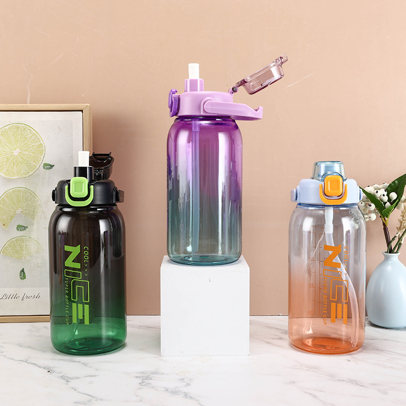 夏季新品大容量透明塑料杯刻度运动太空壶手提带吸管防摔塑料水杯
