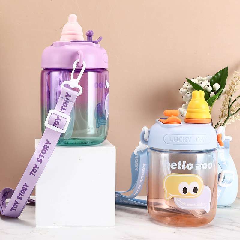 儿童水杯夏天可爱幼儿园塑料吸管水杯子女孩小学生上学大肚杯定制