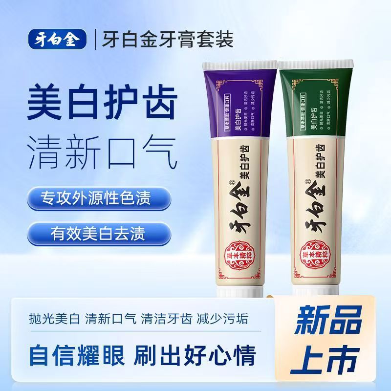 牙白金牙膏套装去渍亮白护龈清洁健齿家庭装清新口气高效洗漱批发
