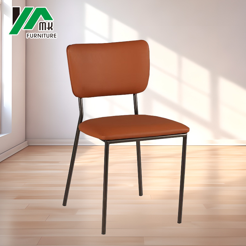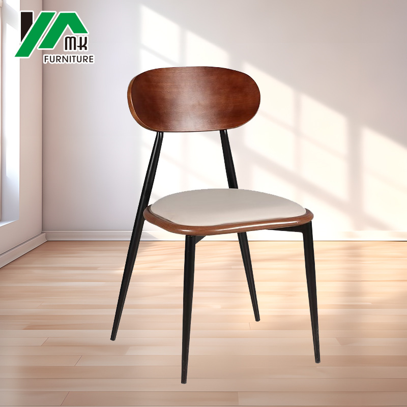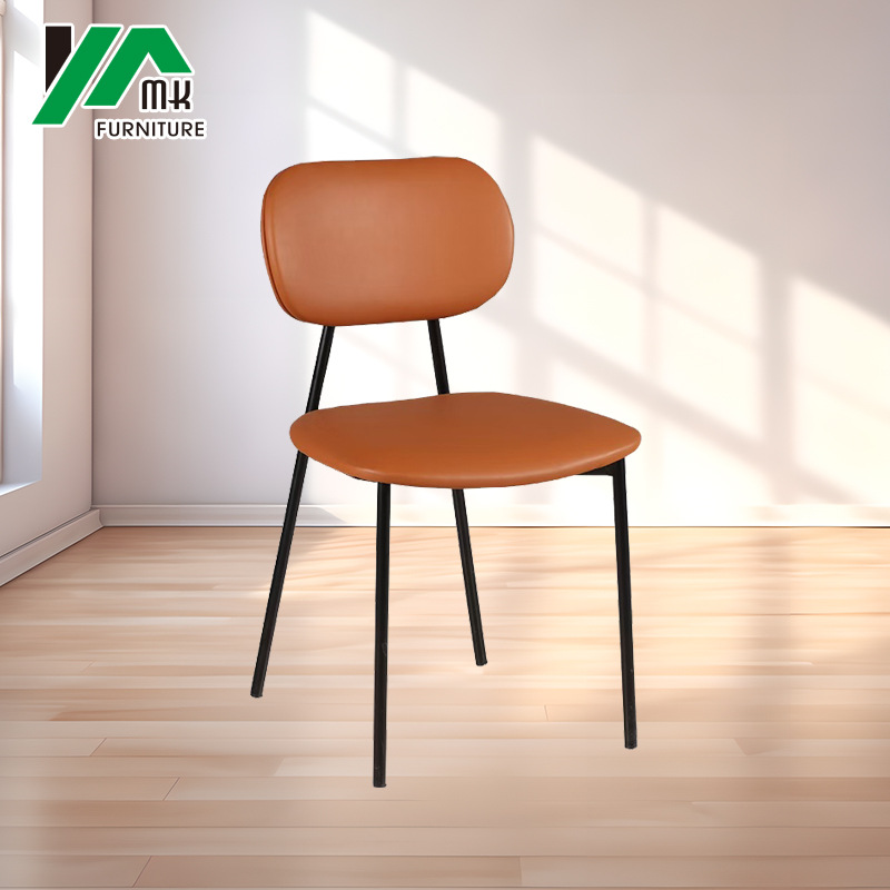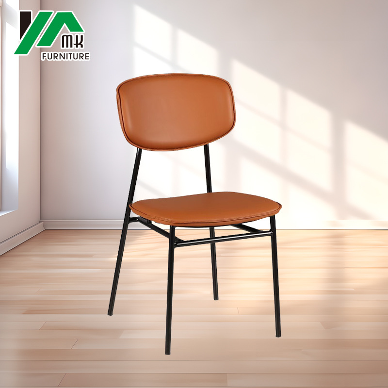 北欧奶油风餐椅家用中古靠背软包椅子极简铁艺靠背凳咖啡厅快餐椅