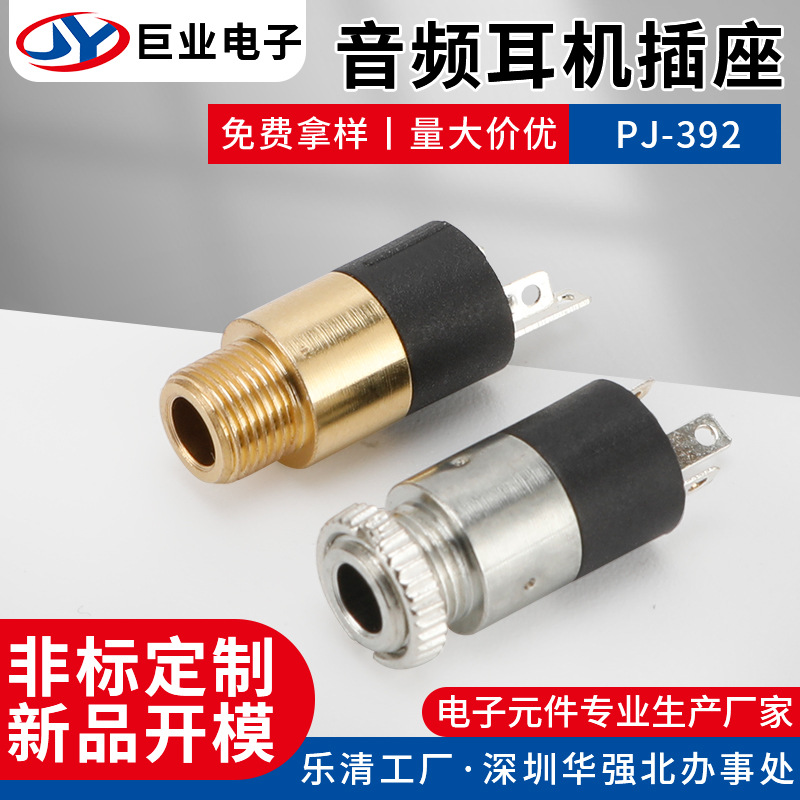 供应3.5MM耳机插座 PJ-392三脚镀银金属插座立式音频插口带螺母