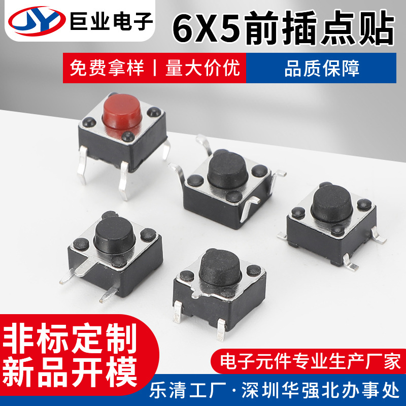 6X5前插点贴轻触开关6*6*5MM立式4脚直插贴片按钮微动按 键开关
