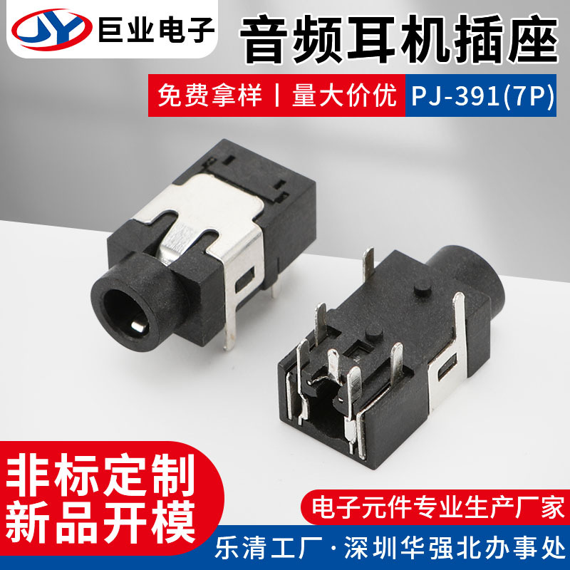 PJ-391耳机插座 3.5mm立式音频插座 7脚卧式耳机接口连接器