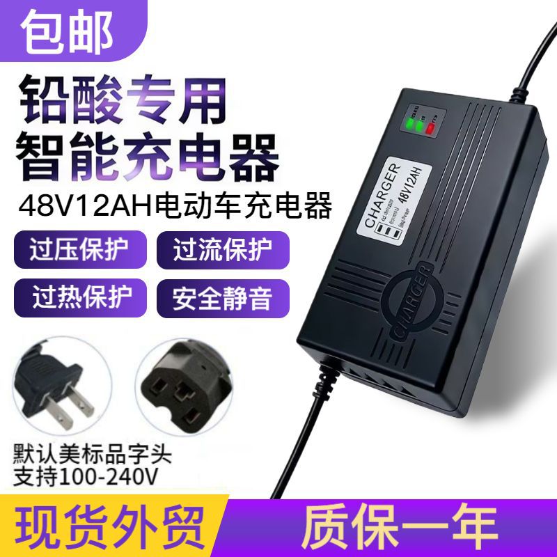 跨境现货48V12AH电动车充电器多种保护三段式铅酸专用智能充电器