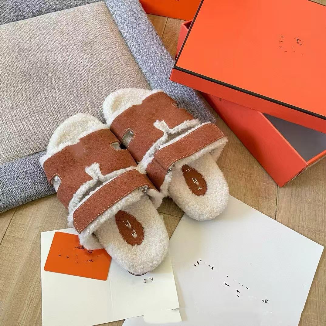 跨境欧美毛毛拖秋冬居家轻便女鞋一字平底羊皮毛一体鞋女保暖外穿
