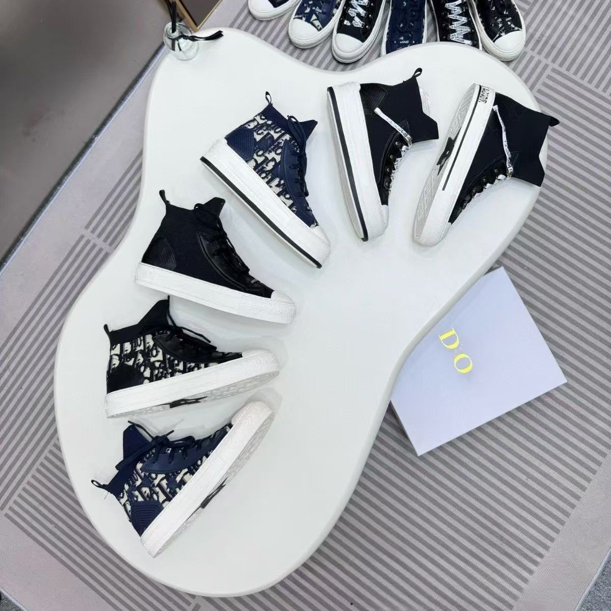 2024新款欧洲站字母女老花高帮帆布鞋绣花运动休闲高邦小白鞋