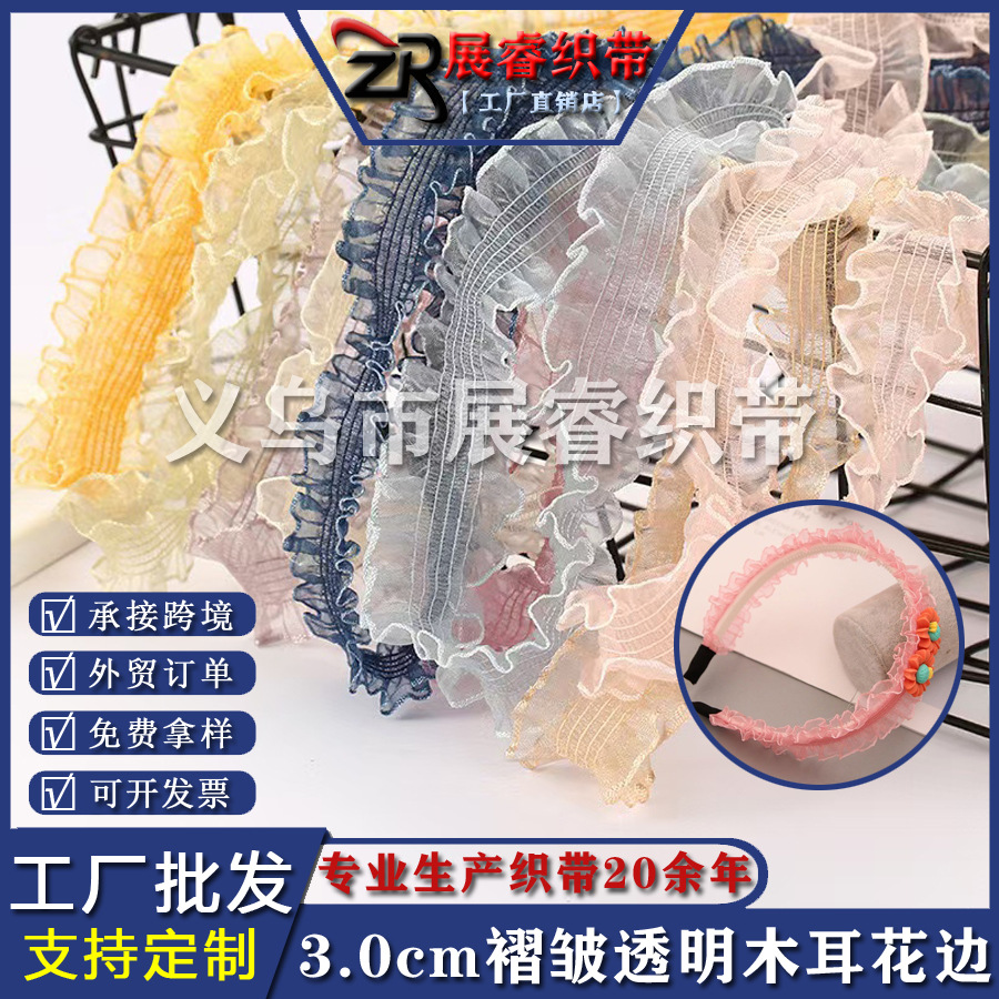现货多款木耳花边弹力带 diy透明蕾丝花边皱折织带 装饰服装辅料