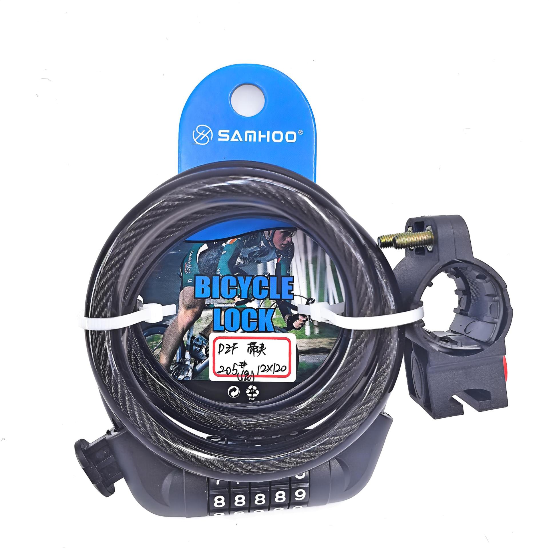 新款自行车锁电动车五位密码锁山地单车条形钢丝圈锁防盗骑行装备