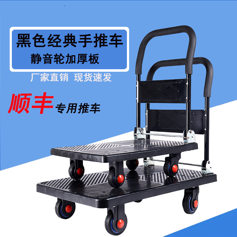 塑料加厚静音折叠平板车家用手推车物流仓储拉货车搬运车四轮拖车