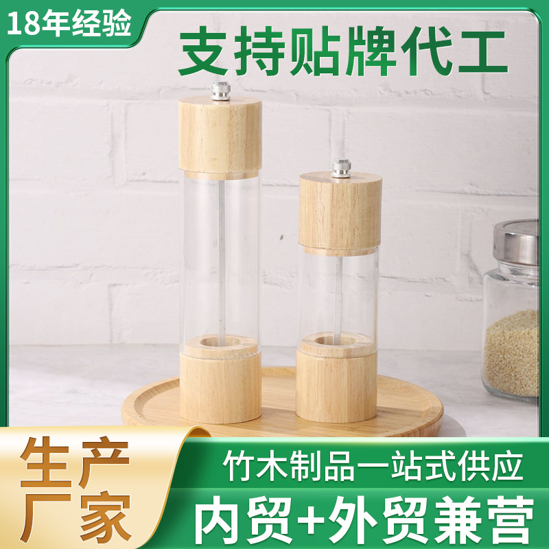 手动胡椒研磨器木质圆柱形艳研磨瓶透明陶瓷芯多用调味瓶厨房工具