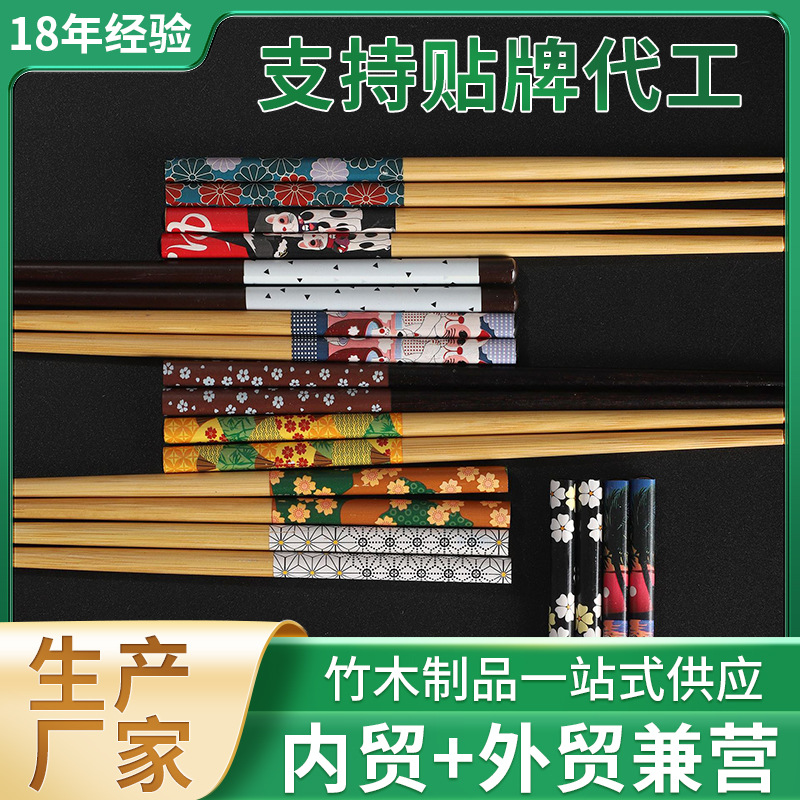 日式尖头筷子五色风景月兔筷子礼盒装竹木筷子漆筷礼盒装厂家批发