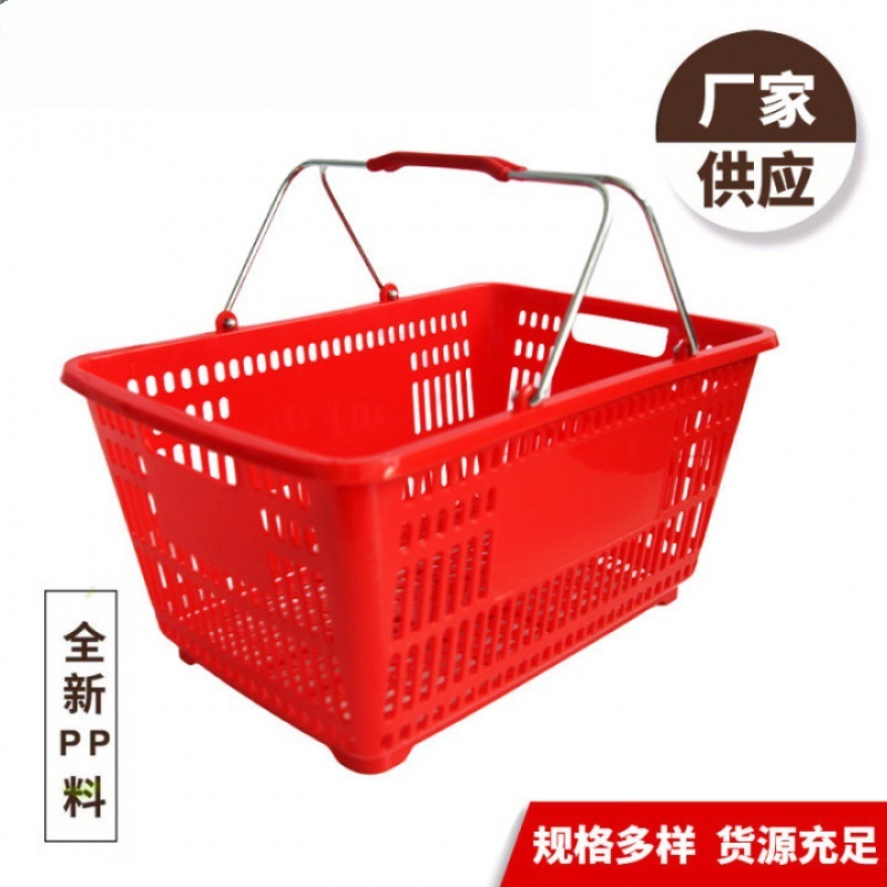 厂家现货超市购物筐金属手柄菜篮子手提篮便利店零食店塑料购物篮